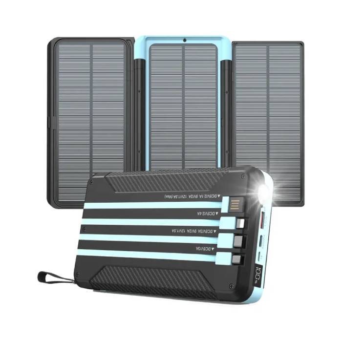پاوربانک های خورشیدی وسایلی هستند که انرژی خورشیدی را جمع آوری و ذخیره می کنند و از آن برای تغذیه و شارژ مجدد وسایل الکترونیکی مانند تبلت، تلفن، لپ تاپ، تلویزیون و … استفاده می کنند. این دسنگاه معمولاً به اندازه کافی کوچک و قابل حمل است؛ تا در صورت نیاز از آن استفاده کنید. اما پاوربانک های خورشیدی بزرگتری نیز وجود دارد که ثابت هستند. آنها در ظرفیتهای مختلف، بین 1000 تا 50000 میلیآمپر ساعت به بازار عرضه میشوند. پاوربانک های خورشیدی دارای محفظه ای با باتری یکپارچه و سایر قطعات هستند که امکان شارژ و دشارژ شدن آن را فراهم می کند. باتری بزرگتر به معنای ظرفیت و قدرت باتری بیشتر است، اما همچنین به معنای پاوربانک بزرگتر است.